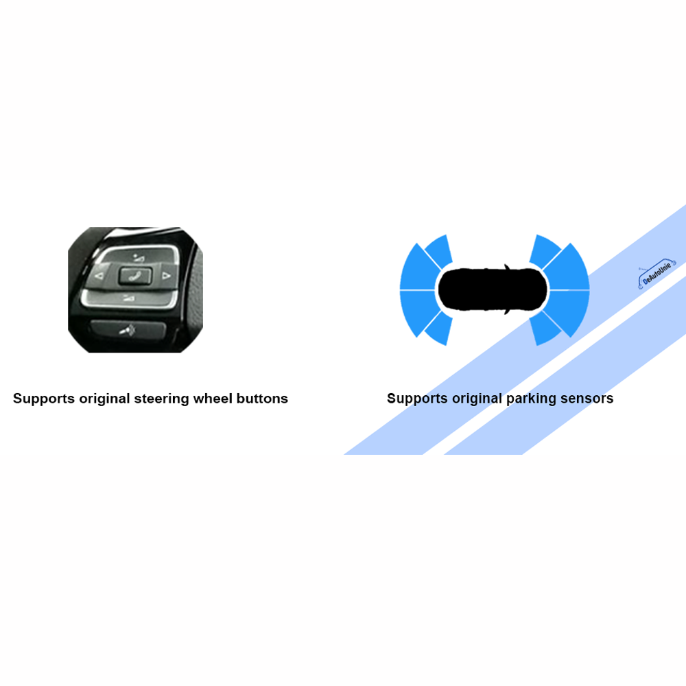 Bij het installeren van ons systeem blijven de originele stuurbediening en parkeersensoren volledig functioneel. Ze werken naadloos samen met ons systeem, waardoor u nog steeds de parkeersensoren visueel kunt weergeven op het scherm. U behoudt alle functies die u gewend bent, met de toegevoegde voordelen van ons systeem.