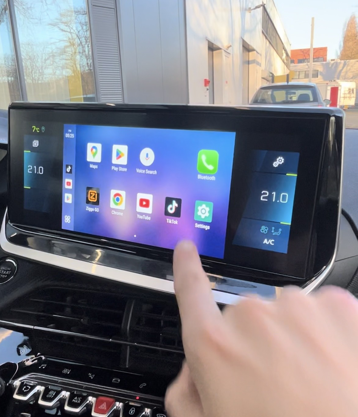 Verbind moeiteloos je iPhone of Android-telefoon via draadloze CarPlay of Android Auto. Gebruik apps zoals Spotify, Flitsmeister, Google Maps en WhatsApp rechtstreeks op het scherm, volledig handsfree en veilig onderweg.
